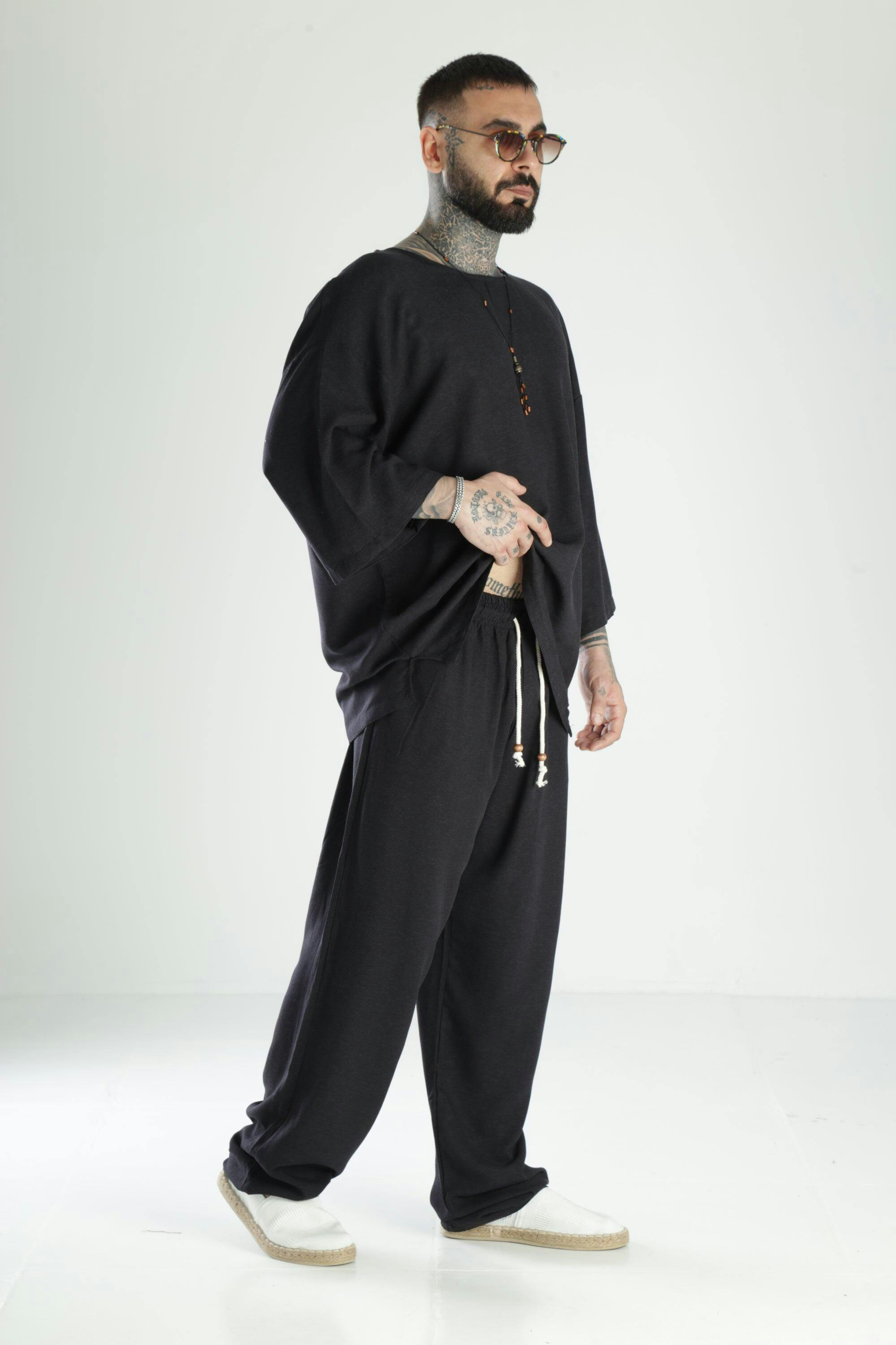 Oversize Siyah Keten Takım